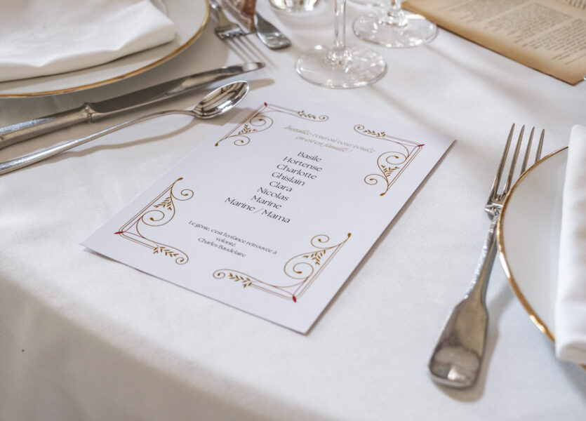 Menus, plan de salle, étiquettes, etc…